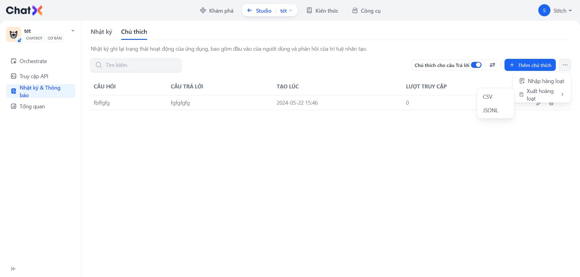 ## **Xuất hàng loạt Q\&A Đã Chú Thích**