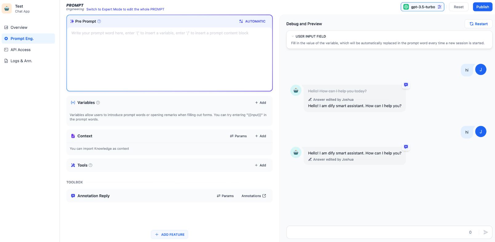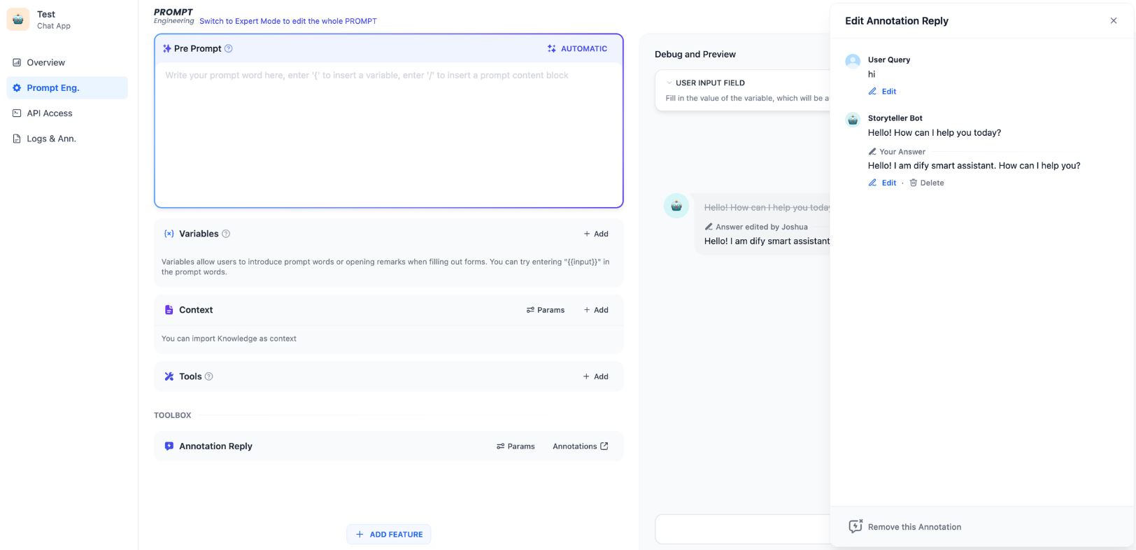 Các chú thích có thể được thêm hoặc chỉnh sửa trực tiếp trên các phản hồi của mô hình trong giao diện gỡ lỗi và xem trước.