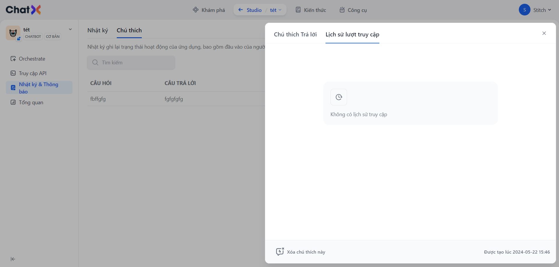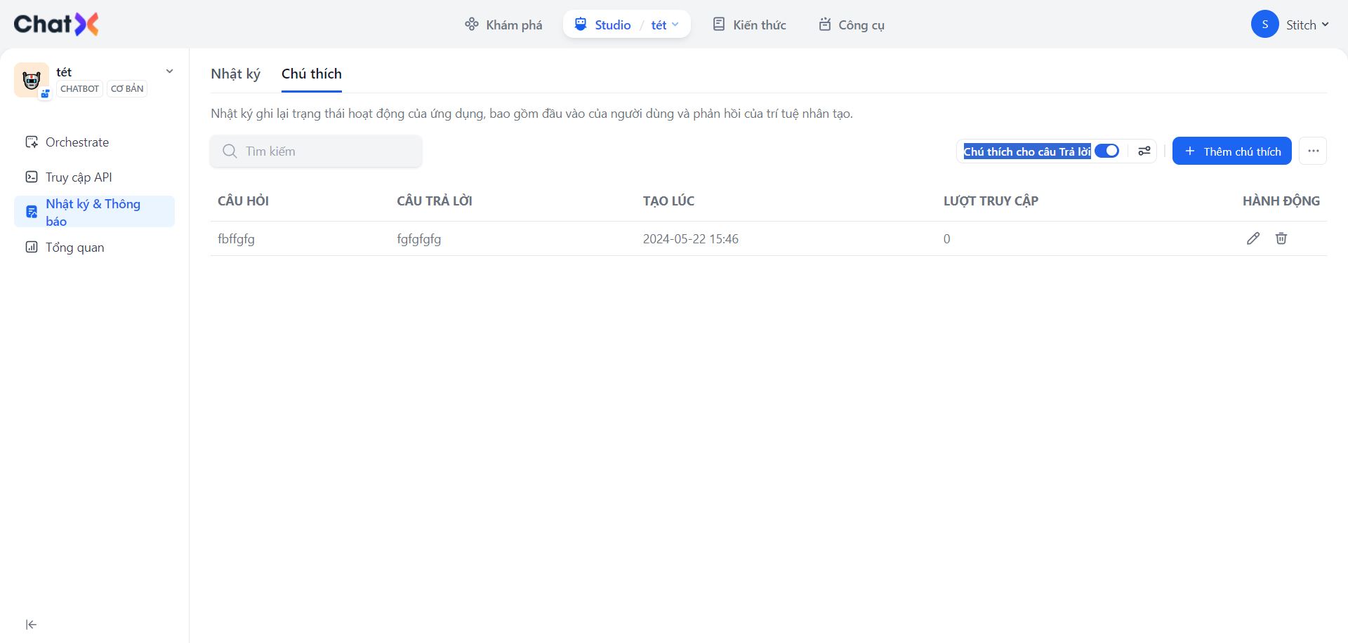 Bật tính năng Chú thích cho câu Trả lời dưới “Studio -> Nhật Ký & Thông Báo -> Chú thích”
