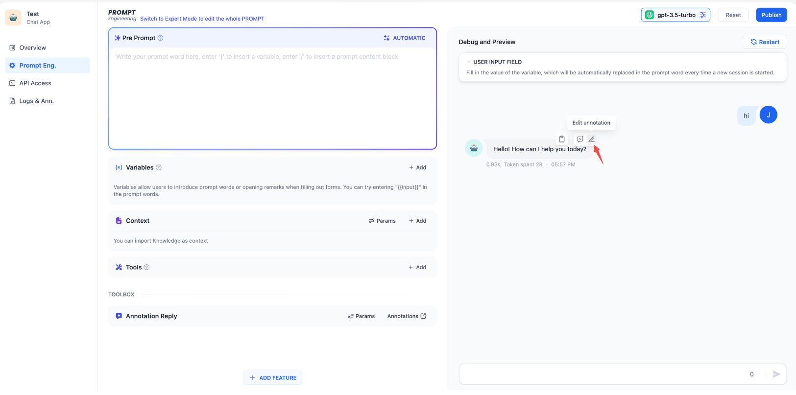 1. Khi được kích hoạt, bạn có thể chú thích các phản hồi đối thoại của LLM. Các chú thích có thể là các câu trả lời chất lượng cao được lấy trực tiếp từ LLM hoặc các chú thích chỉnh sửa của bạn. Những nội dung chú thích này được lưu lại để sử dụng trong tương lai.