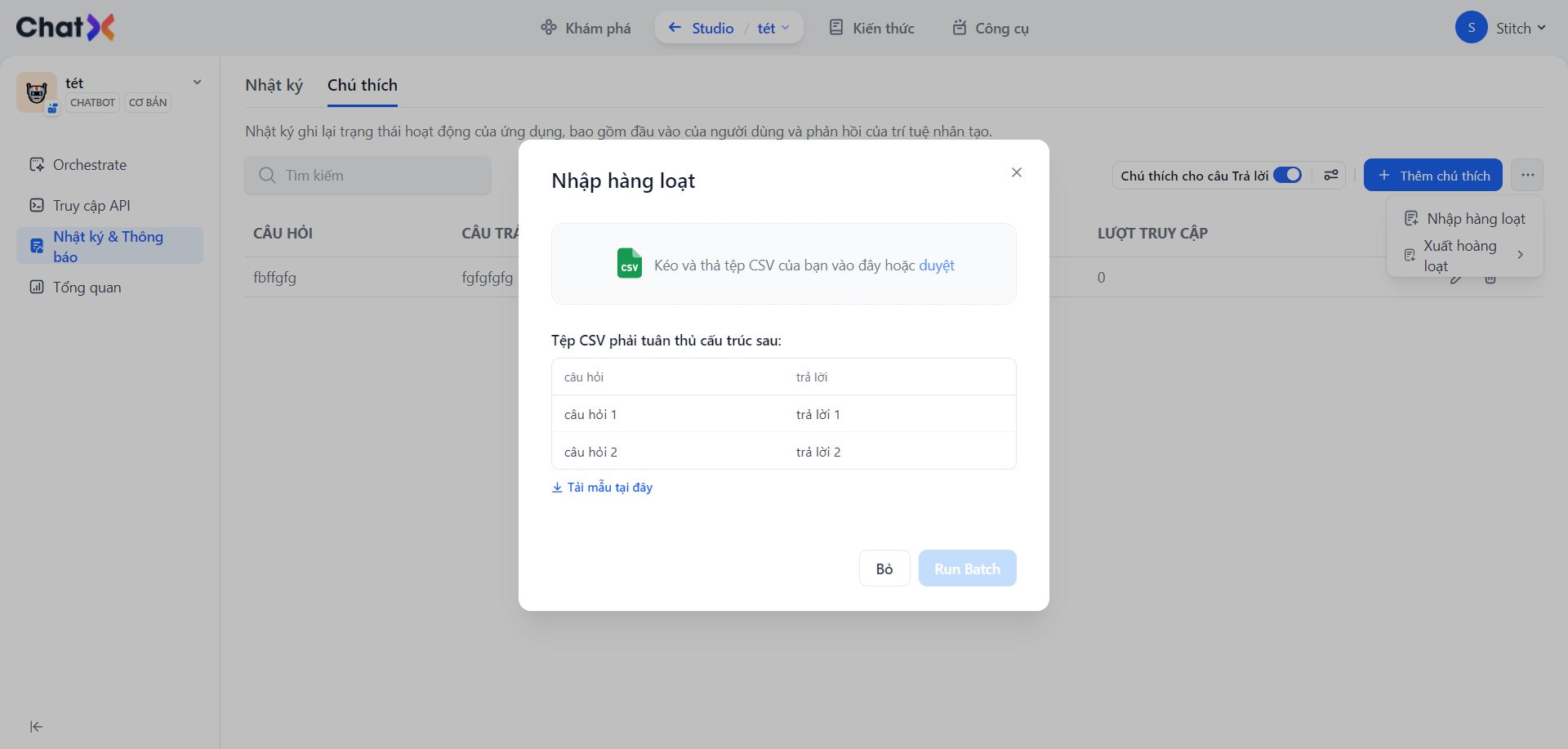 ## **Nhập hàng loạt Q\&A Đã Chú Thích**