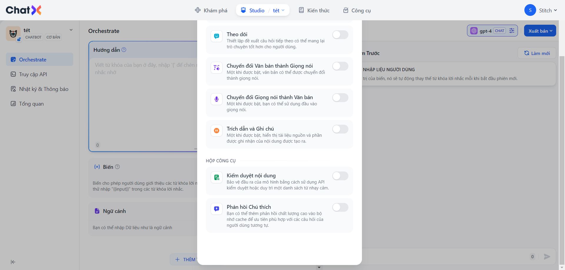 * Điều hướng đến “Studio -> Add Feature” để bật tính năng Phản hồi chú thích.