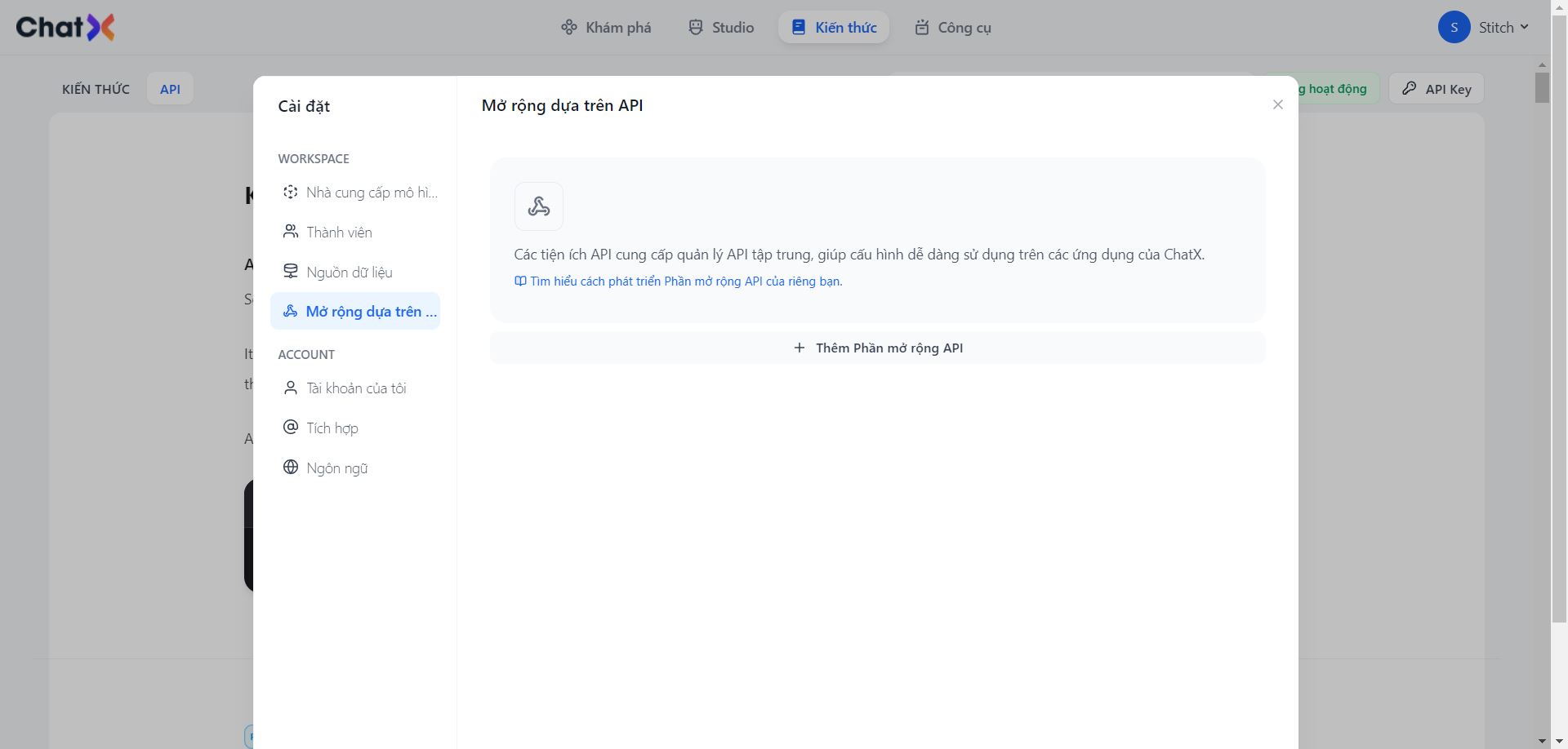 <figure><img src="https://content.gitbook.com/content/SK9x6AT8FGi77omZphkL/blobs/mwn5Qy0AfaLZlVV2yJfL/Capture.JPG" alt=""><figcaption><p>Tiện ích mở rộng dựa trên API</p></figcaption></figure>
