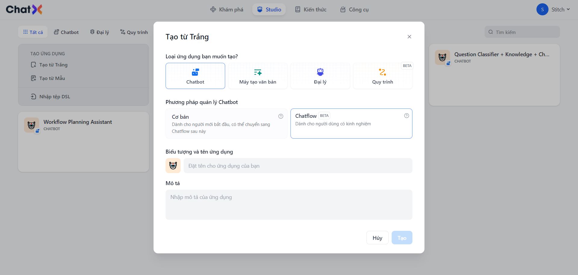 * **Chatflow**: Hướng đến các kịch bản hội thoại và đại diện cho một chế độ chỉ đạo tiên tiến cho các loại ứng dụng Chatbot.