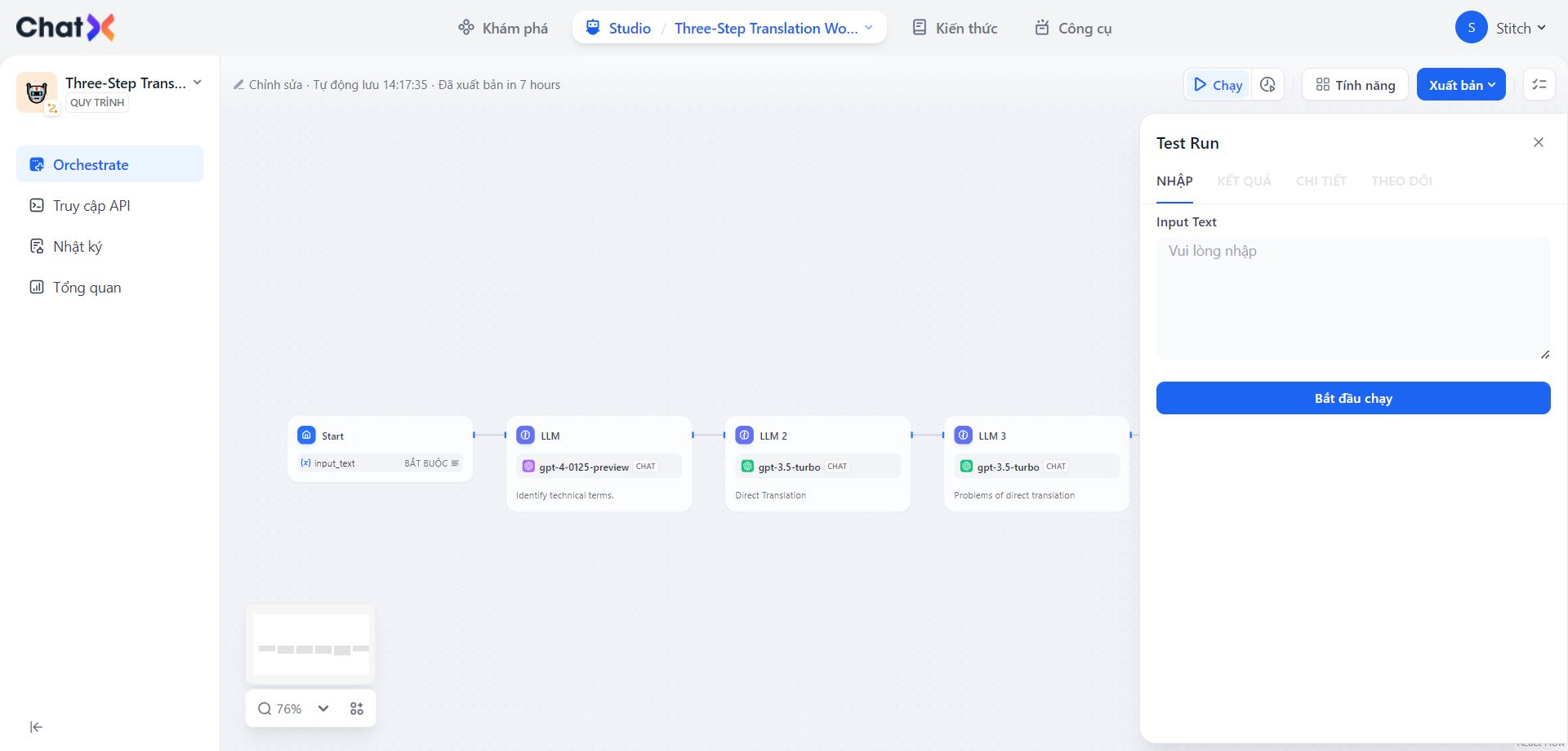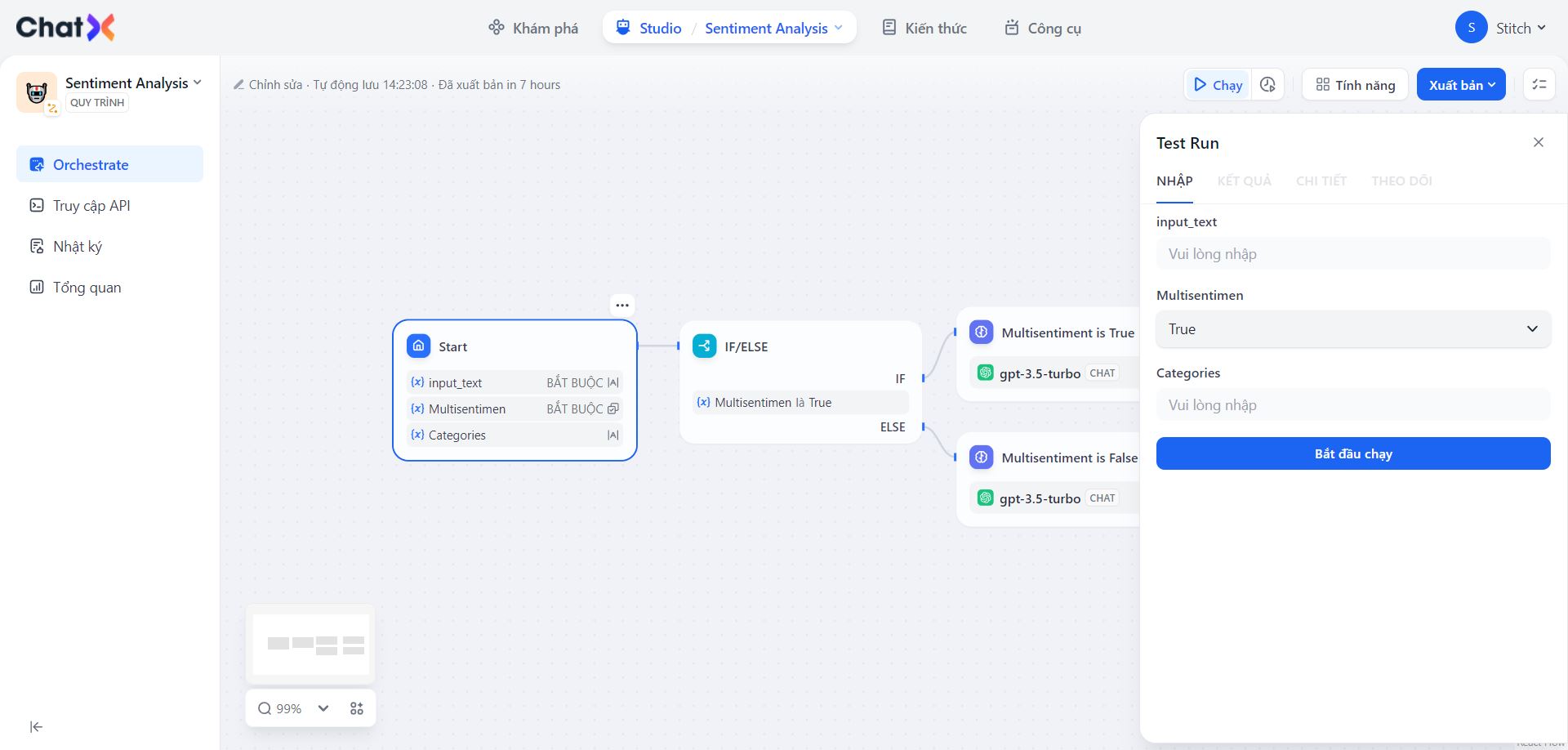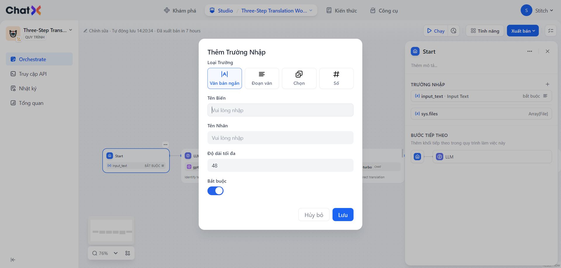 Sau khi hoàn tất cấu hình, quá trình thực thi của workflow sẽ yêu cầu các giá trị của các biến được định nghĩa trong nút Bắt đầu. Bước này đảm bảo rằng quy trình làm việc có đủ thông tin cần thiết để tiếp tục với các quy trình được chỉ định của mình.